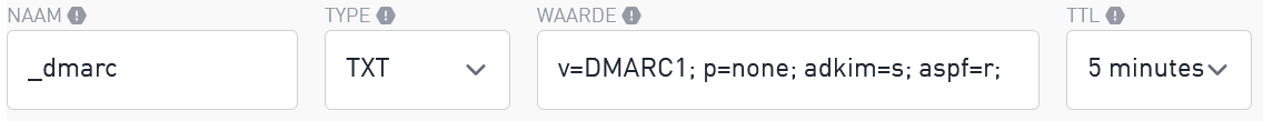 Of je een DMARC record hebt kan je hier makkelijk zien: DMARC Check Tool - Domain Message Authentication Reporting & Conformance Lookup - MxToolBox