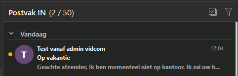 Als ik daar mail aan stuur komt netjes de vakantiemelding van domein vidcom.nl binnen: