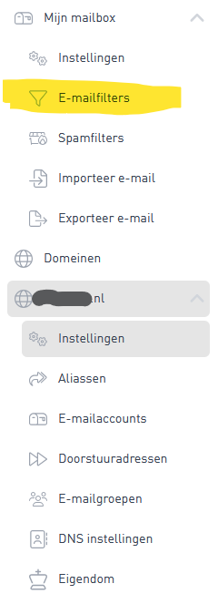 In tegenstelling tot het standaard @freedom.nl domein kan ik de e-mail filter instellingen van mijn eigen domein niet vinden. Kijk ik er nou zo langs? Of zijn die niet beschikbaar?