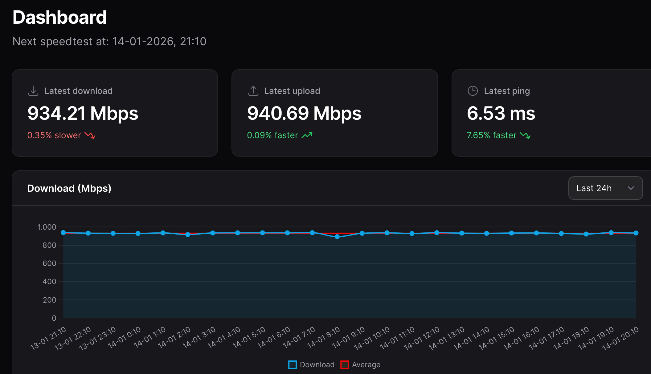 Wat ik merk is dat ik bij Odido altijd strak de gigabit snelheid aanraakte. Bij Freedom op rustige momenten zit het rond de 900mbit en op de drukkere momenten (in de avond) gaat het richting de 600mbit.