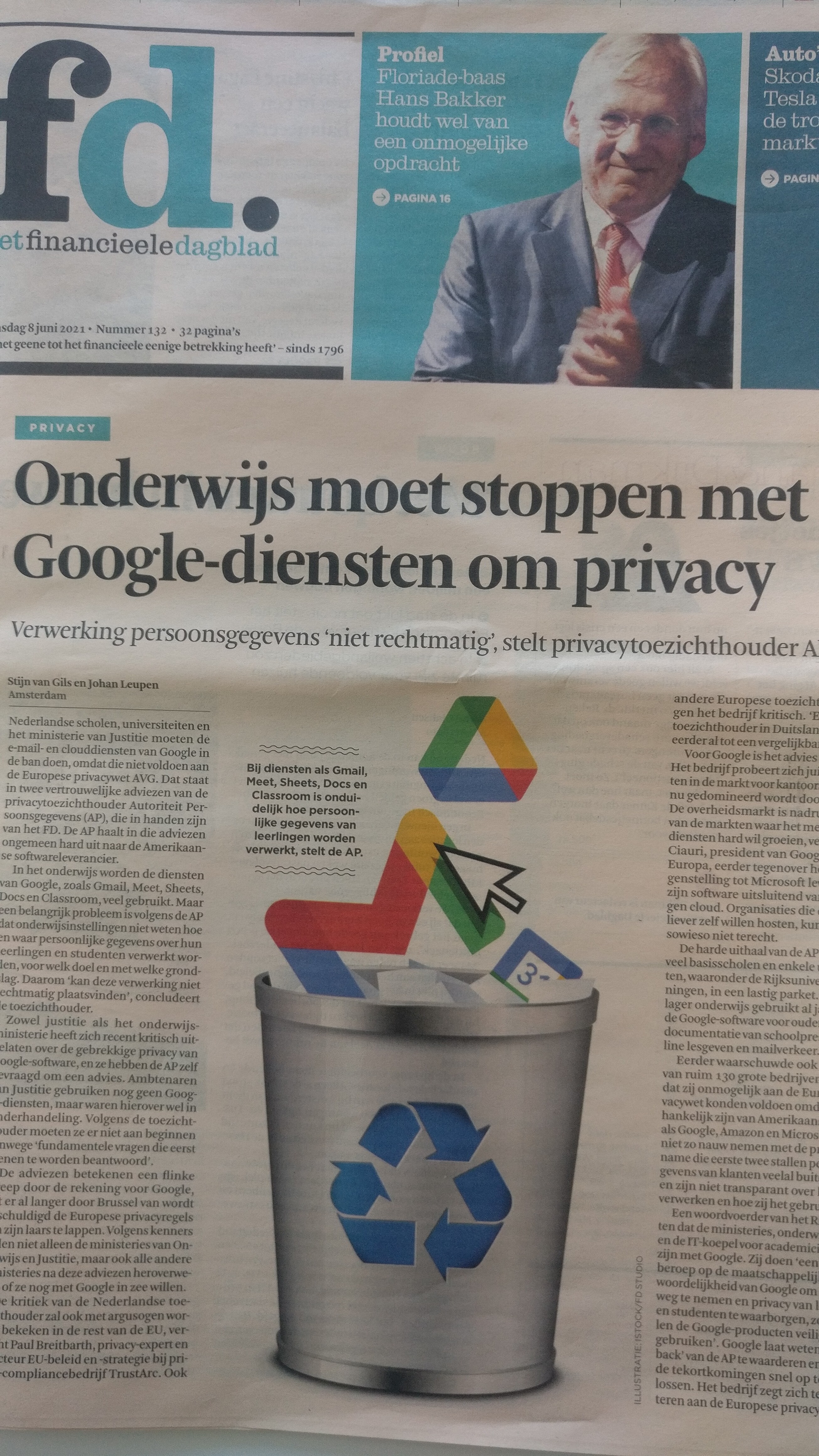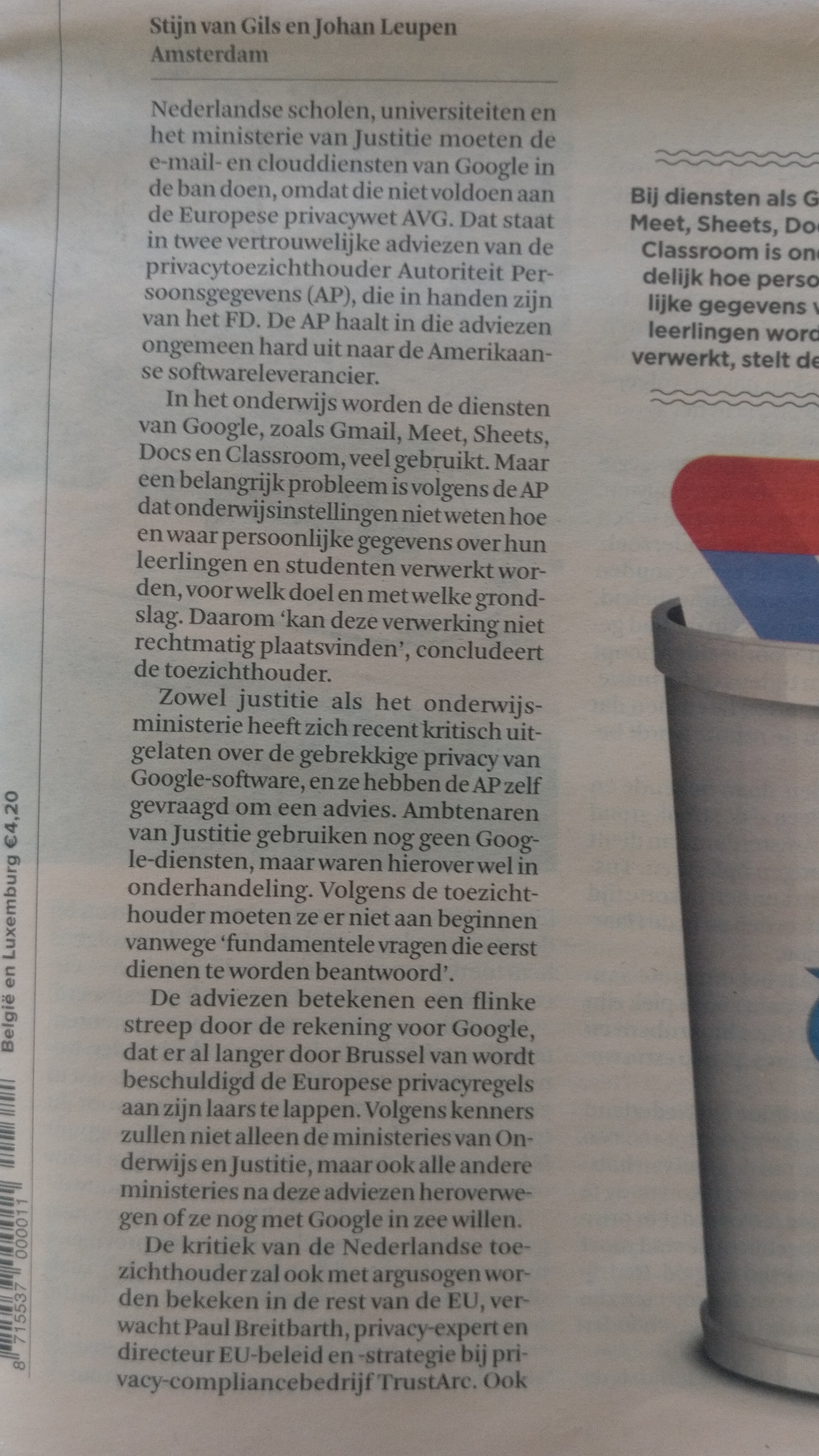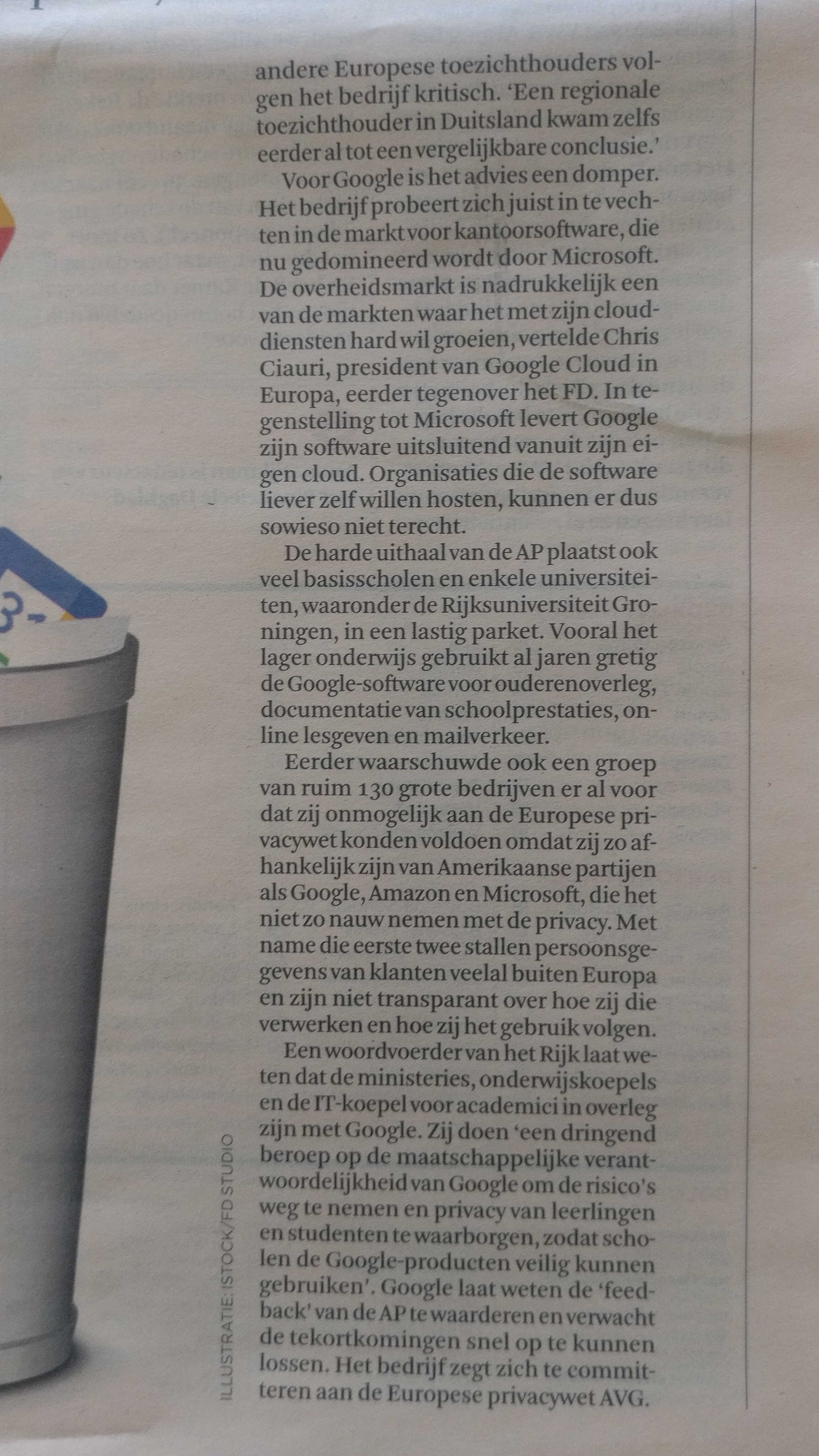 Weliswaar niet specifiek over het Onderwijs, maar wel een punt van aandacht nu Google onder een vergrootglas ligt: de verantwoordelijkheid van de gegevens- en privacybescherming bij veelgebruikte clouddiensten in het Onderwijs, niet alleen van Google maar ook Microsoft Azure.