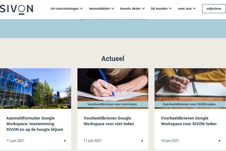 SIVON heeft voorbeeldbrieven en het aanmeldformulier op haar website beschermd met een wachtwoord voor mensen die op de hoogte gehouden willen worden over Google Workspace.