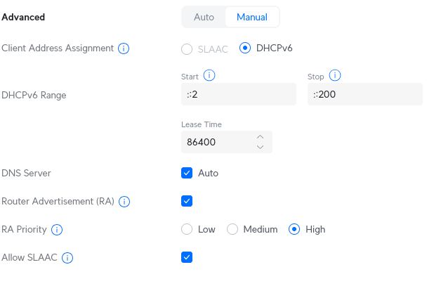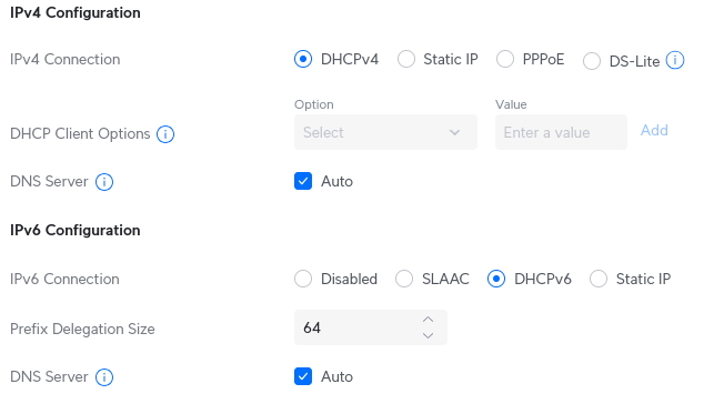Selecteer: Assign DNS server, prefix (IA_PD) and IPv6 address (IA_NA)