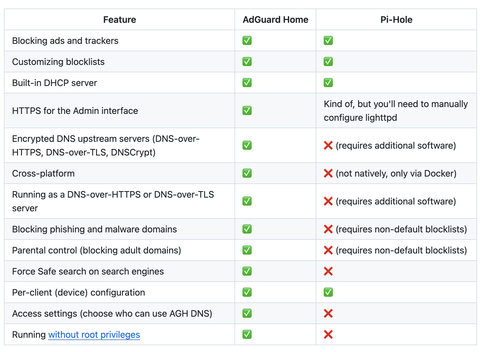 Beide hebben pihole, maar de GAST LAN wat meer liberaal ingesteld dan de andere.